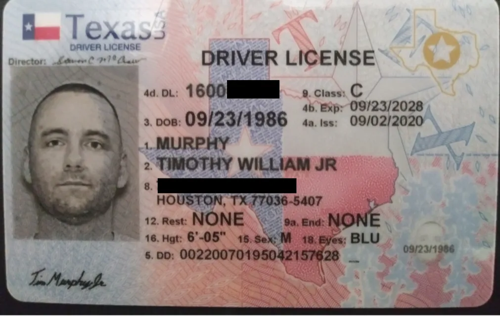 State of TX Drivers License