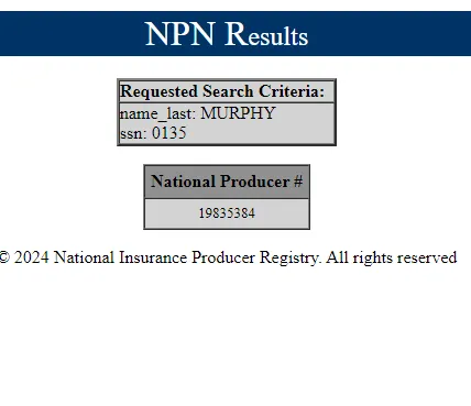 This National Producer Number is equivalent to a business social security number